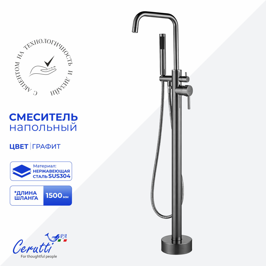 Смеситель напольный Ceruttispa Афра GG (AFRA GG) из нержавеющей стали, цвет графит