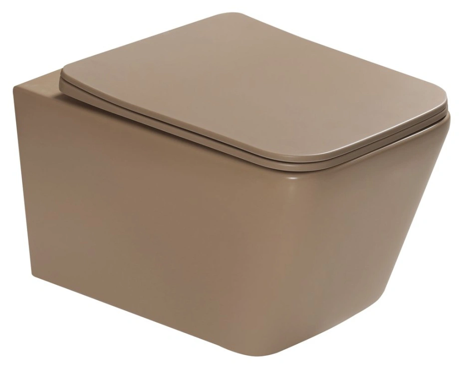 Унитаз SantiLine SL-5007T-BG подвесной, безободковый, с микролифт, светло-коричневый матовый