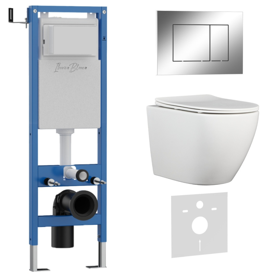 Комплект 3в1 IBERICA BLANCA инсталляция SILENCIO MINI, унитаз BILBAO ALTO белый, кнопка смыва ESTI-S хром глянцевый (IB.001M.BLA.231.852)