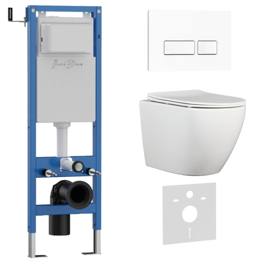 Комплект 3в1 IBERICA BLANCA инсталляция SILENCIO MINI, унитаз BILBAO ALTO белый, кнопка смыва ESTI-R белый глянцевый (IB.001M.BLA.234.211)