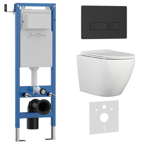 Комплект 3в1 IBERICA BLANCA инсталляция SILENCIO MINI, унитаз BILBAO ALTO белый, кнопка смыва ESTI-R черный матовый (IB.001M.BLA.231.212)