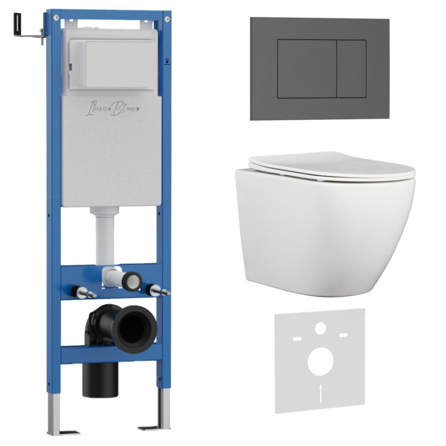 Комплект 3в1 IBERICA BLANCA инсталляция SILENCIO MINI, унитаз BILBAO ALTO белый, кнопка смыва ESTI-S серый матовый (IB.001M.BLA.231.856)