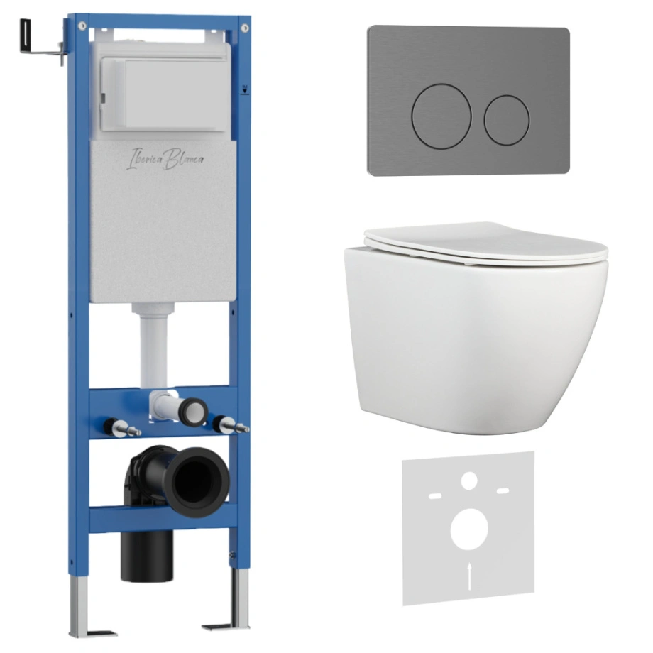 Комплект 3в1 IBERICA BLANCA инсталляция SILENCIO MINI, унитаз BILBAO ALTO белый, кнопка смыва INOX-О вороненая сталь (IB.001M.BLA.231.8180)