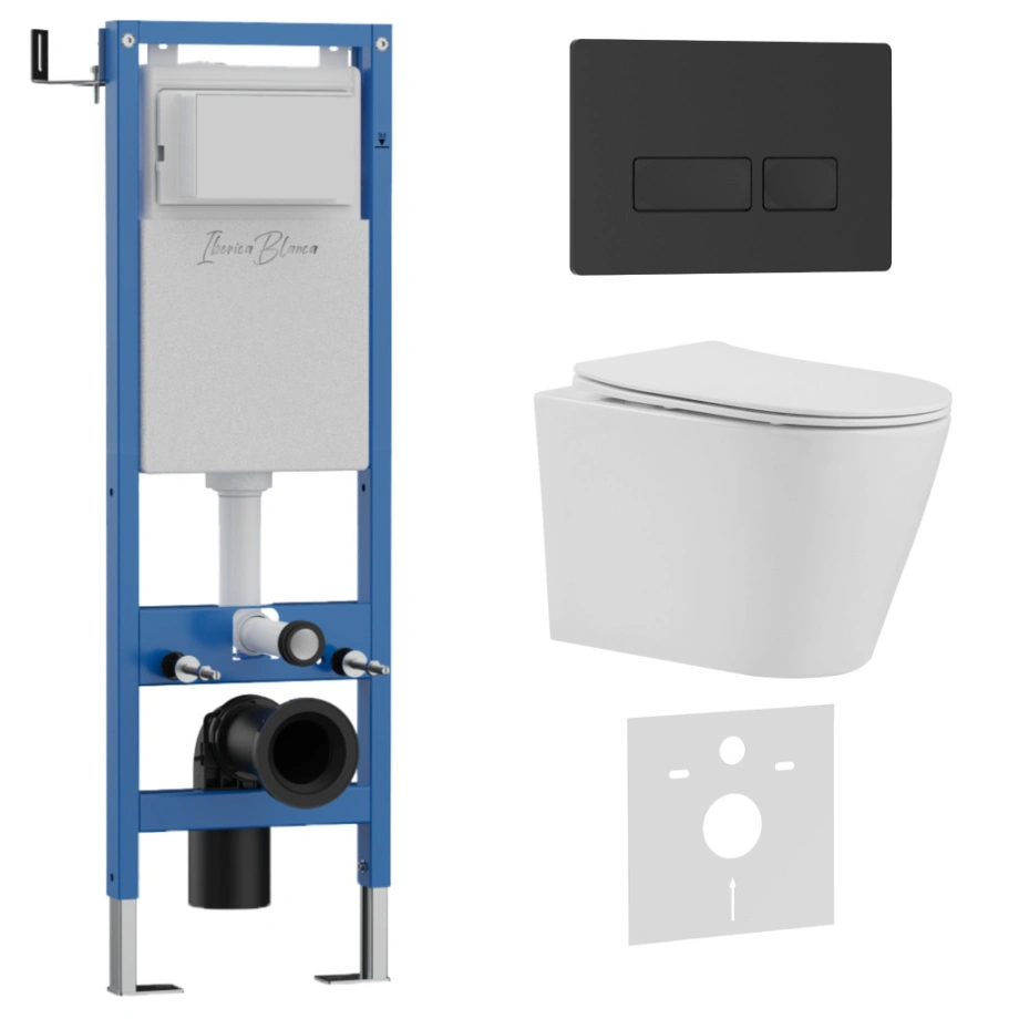 Комплект 3в1 IBERICA BLANCA инсталляция SILENCIO MINI, унитаз BURGOS ALTO белый, кнопка смыва ESTI-R черный матовый (IB.001M.BRA.234.212)
