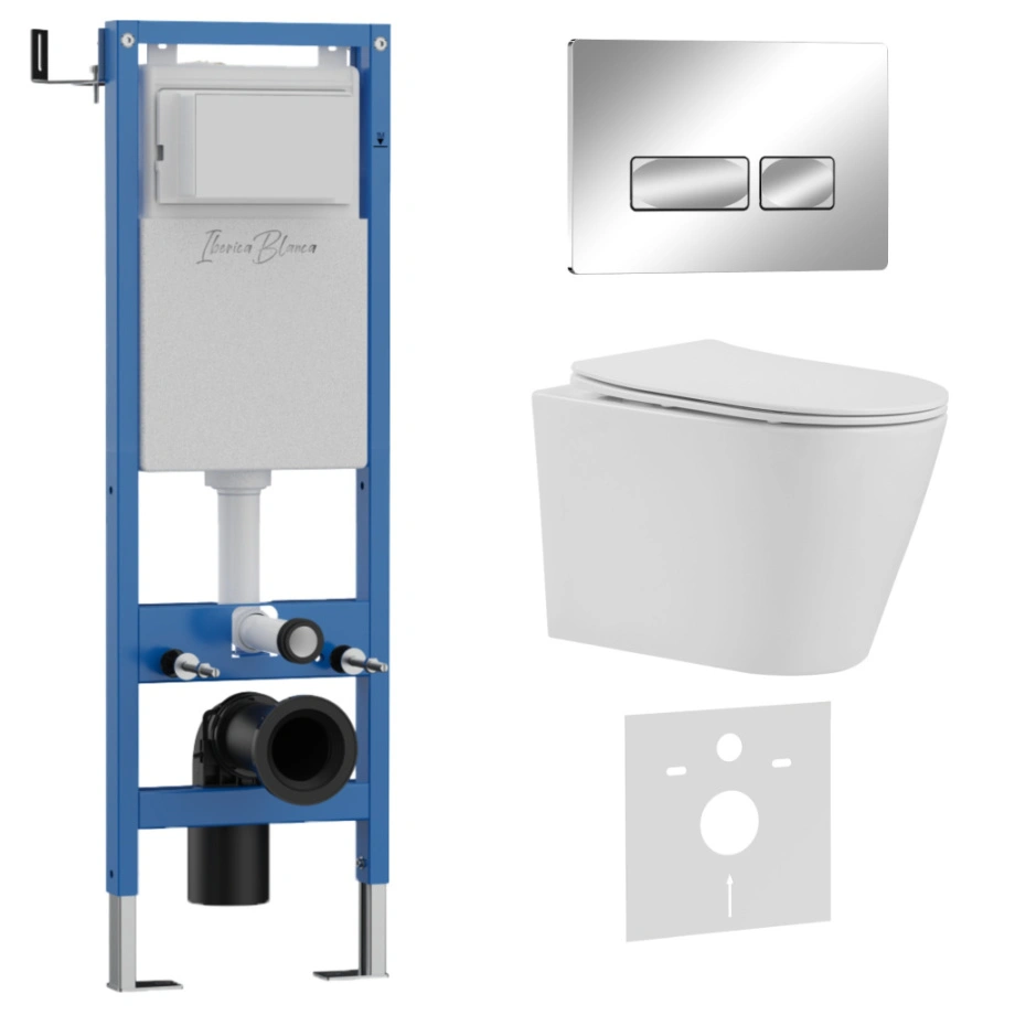 Комплект 3в1 IBERICA BLANCA инсталляция SILENCIO MINI, унитаз BURGOS ALTO белый, кнопка смыва ESTI-R хром глянцевый (IB.001M.BRA.231.213)