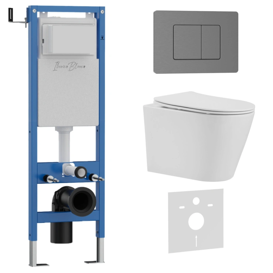 Комплект 3в1 IBERICA BLANCA инсталляция SILENCIO MINI, унитаз BURGOS ALTO белый, кнопка смыва INOX-C вороненая сталь (IB.001M.BRA.234.1180)