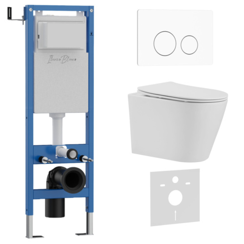 Комплект 3в1 IBERICA BLANCA инсталляция SILENCIO MINI, унитаз BURGOS ALTO белый, кнопка смыва INOX-O белый матовый (IB.001M.BRA.231.811)