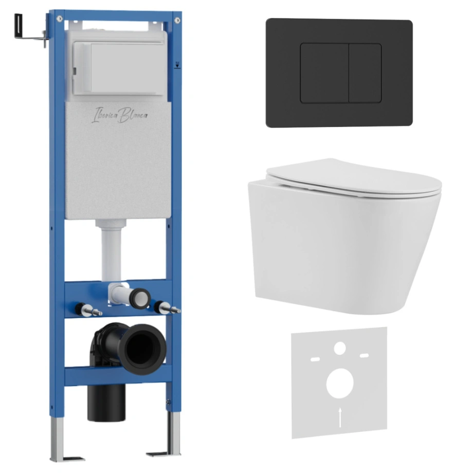 Комплект 3в1 IBERICA BLANCA инсталляция SILENCIO MINI, унитаз BURGOS ALTO белый, кнопка смыва INOX-C черный матовый (IB.001M.BRA.231.112)