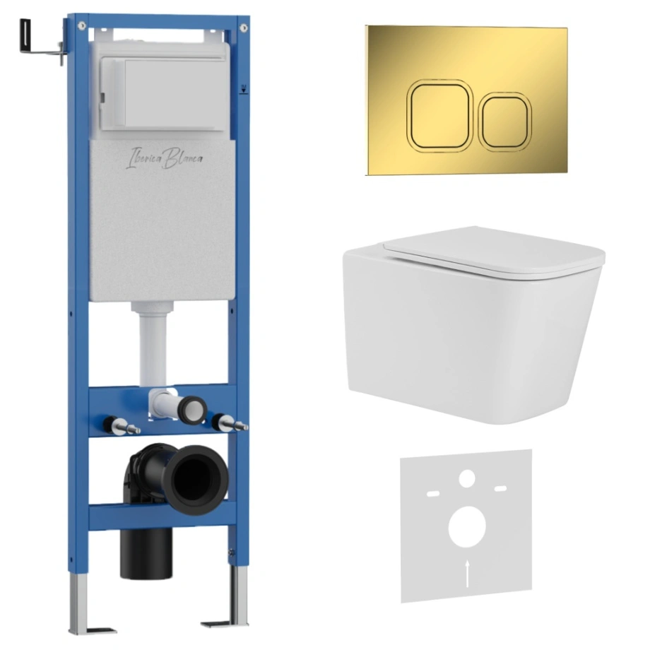Комплект 3в1 IBERICA BLANCA инсталляция SILENCIO MINI, унитаз TOLEDO ALTO белый, кнопка смыва ESTI-Q золото глянцевое (IB.001M.TLA.231.836)