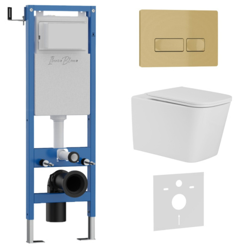 Комплект 3в1 IBERICA BLANCA инсталляция SILENCIO MINI, унитаз TOLEDO ALTO белый, кнопка смыва ESTI-R золото матовое (IB.001M.TLA.234.215)