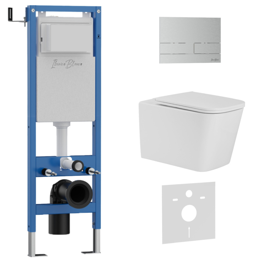 Комплект 3в1 IBERICA BLANCA инсталляция SILENCIO MINI, унитаз TOLEDO ALTO белый, кнопка смыва INOX-S хром матовый (IB.001M.TLA.231.1601)