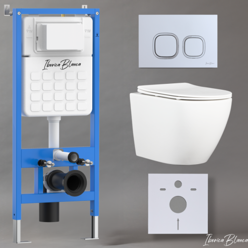 Комплект 3в1 IBERICA BLANCA инсталляция SILENCIO, унитаз BILBAO ALTO белый, кнопка смыва ESTI-Q хром матовый (IB001.BLA.231.834)