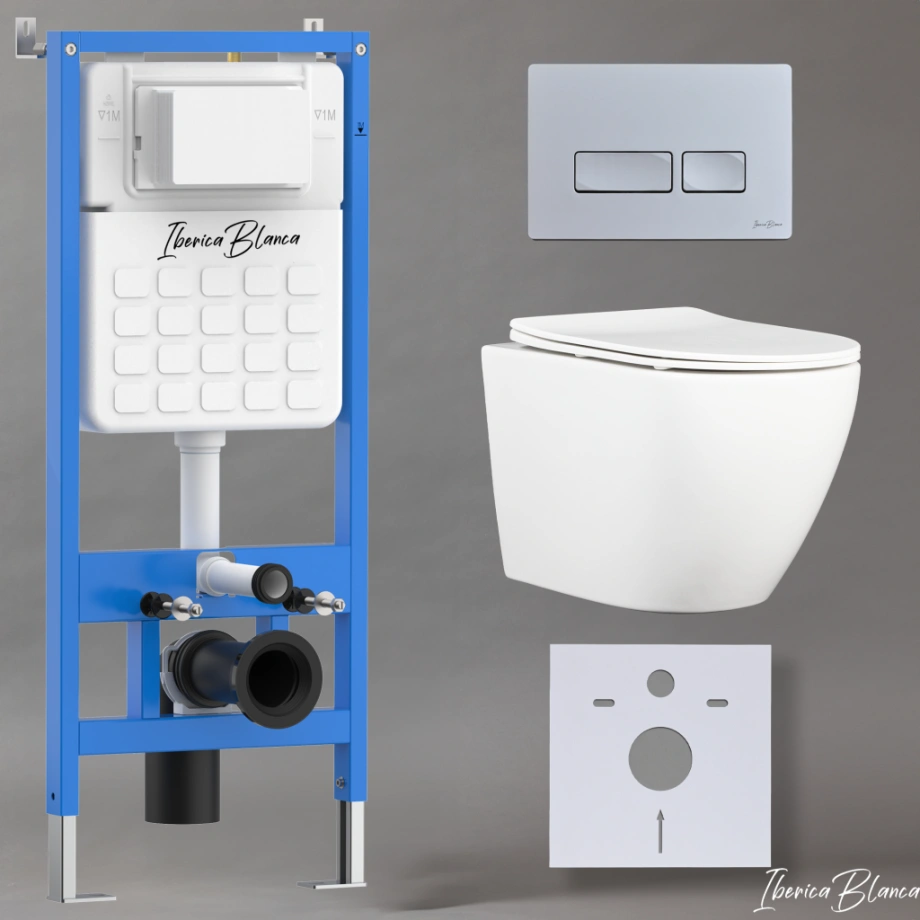 Комплект 3в1 IBERICA BLANCA инсталляция SILENCIO, унитаз BILBAO ALTO белый, кнопка смыва ESTI-R хром матовый (IB001.BLA.231.214)