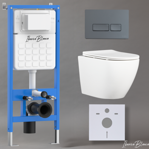 Комплект 3в1 IBERICA BLANCA инсталляция SILENCIO, унитаз BILBAO ALTO белый, кнопка смыва ESTI-R серый матовый (IB001.BLA.231.218)