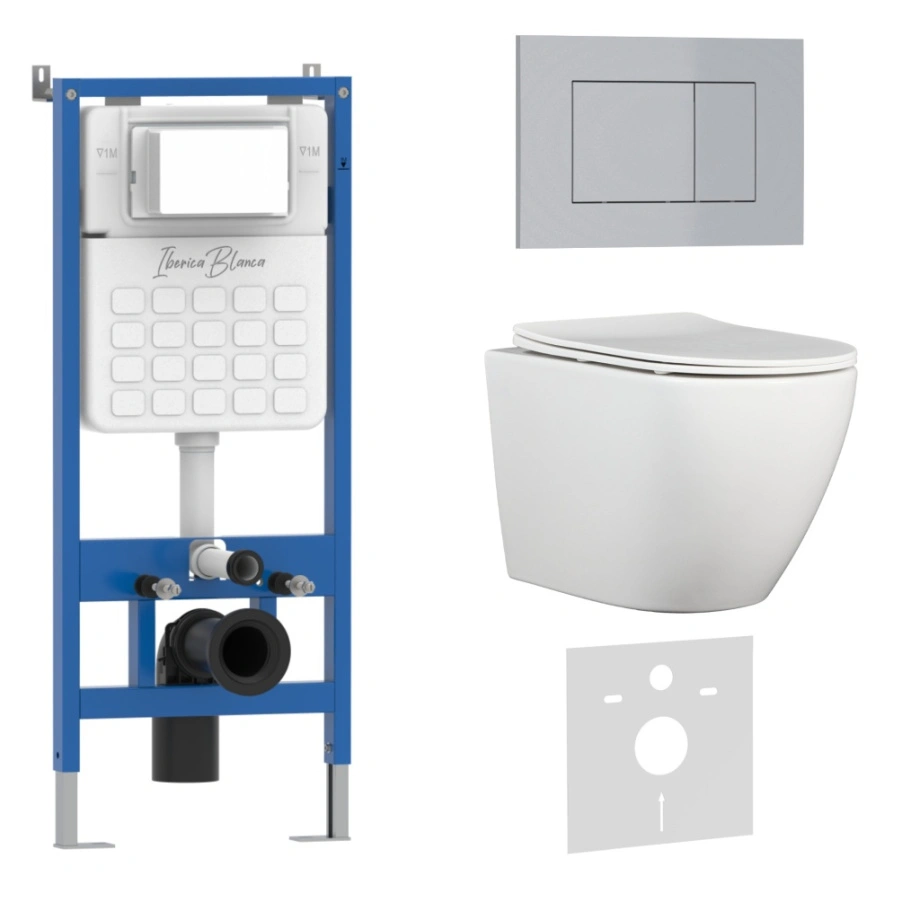 Комплект 3в1 IBERICA BLANCA инсталляция SILENCIO, унитаз BILBAO ALTO белый, кнопка смыва ESTI-S хром матовый (IB001.BLA.234.853)