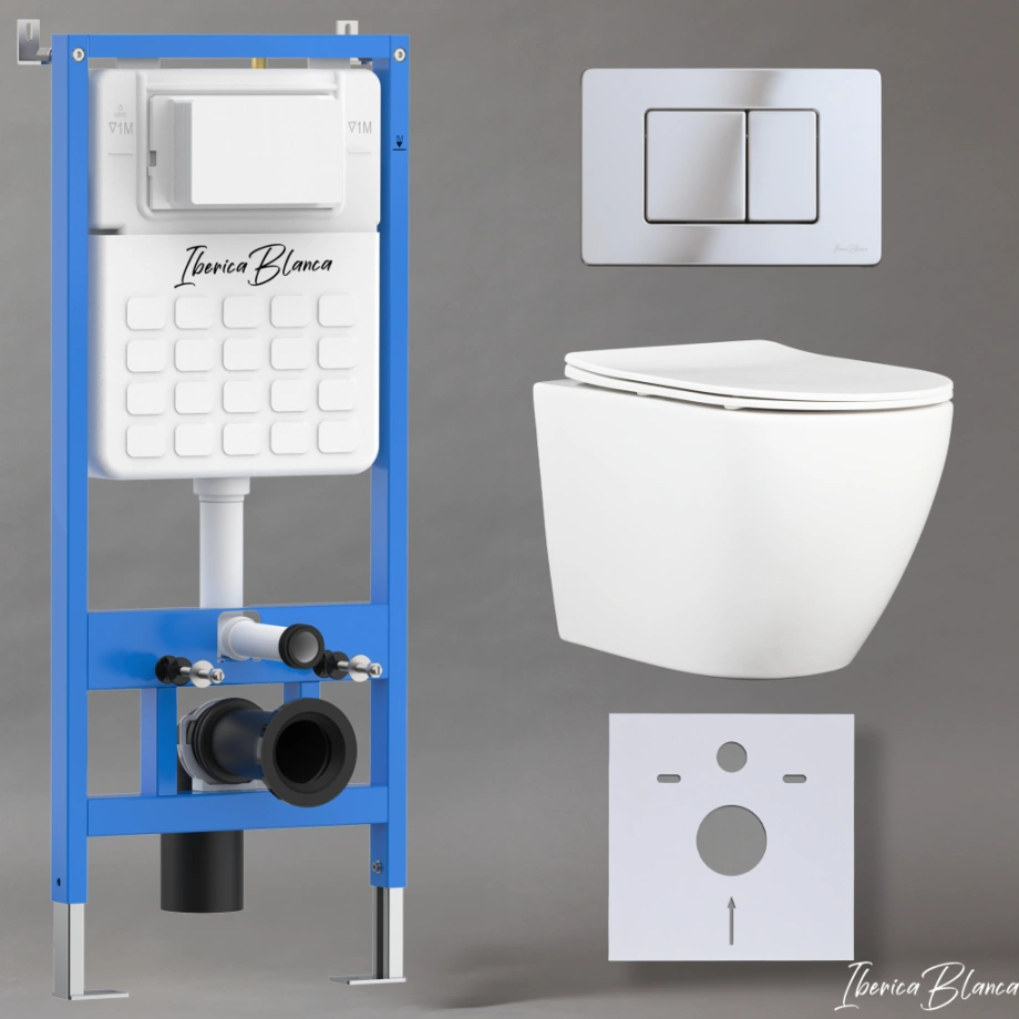 Комплект 3в1 IBERICA BLANCA инсталляция SILENCIO, унитаз BILBAO ALTO белый, кнопка смыва INOX-C хром глянцевый (IB001.BLA.231.1131)
