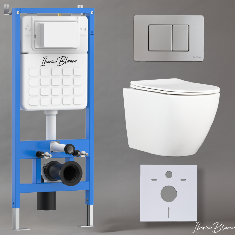 Комплект 3в1 IBERICA BLANCA инсталляция SILENCIO, унитаз BILBAO ALTO белый, кнопка смыва INOX-C хром матовый (IB001.BLA.234.1132)