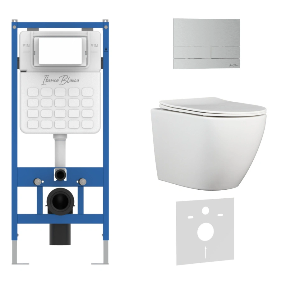 Комплект 3в1 IBERICA BLANCA инсталляция SILENCIO, унитаз BILBAO ALTO белый, кнопка смыва INOX-S хром матовый (IB001.BLA.231.1601)