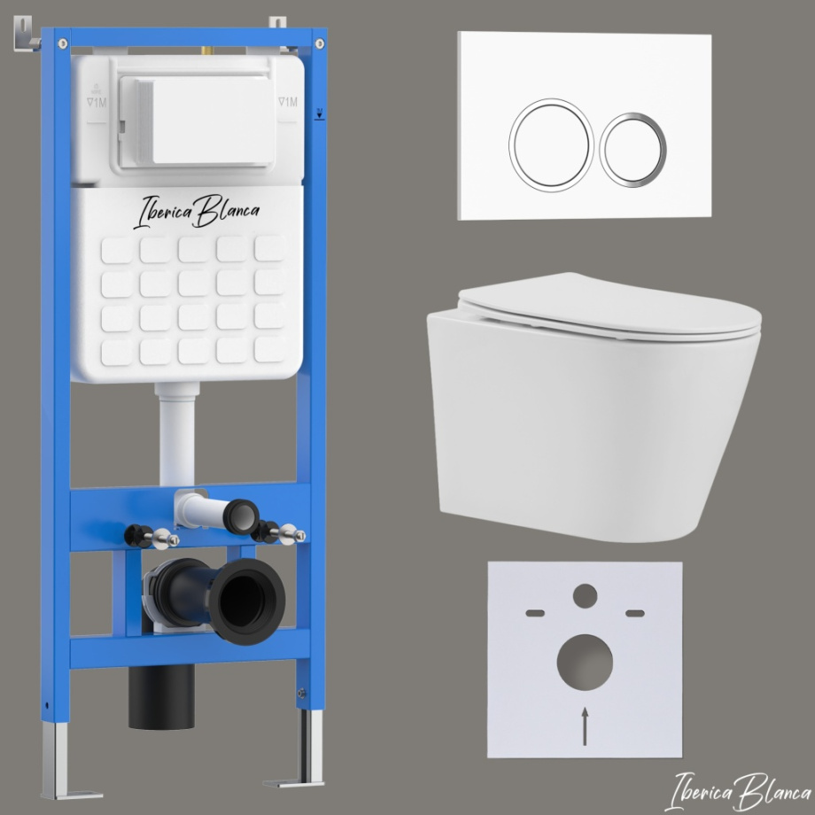 Комплект 3в1 IBERICA BLANCA инсталляция SILENCIO, унитаз BURGOS ALTO белый, кнопка смыва ESTI-O белый глянцевый (IB001.BRA.234.821)