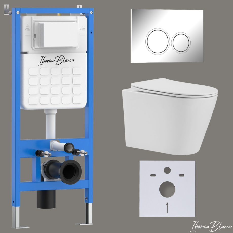 Комплект 3в1 IBERICA BLANCA инсталляция SILENCIO, унитаз BURGOS ALTO белый, кнопка смыва ESTI-O хром глянцевый (IB001.BRA.231.823)