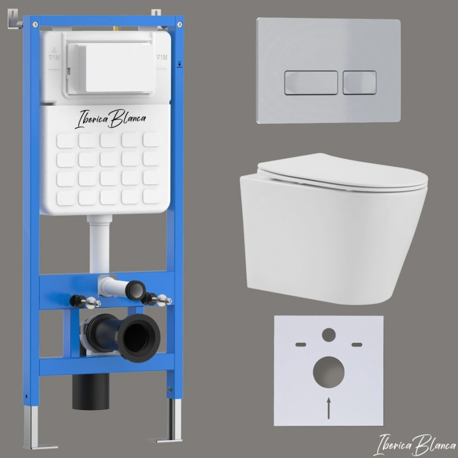 Комплект 3в1 IBERICA BLANCA инсталляция SILENCIO, унитаз BURGOS ALTO белый, кнопка смыва ESTI-R хром матовый (IB001.BRA.231.214)
