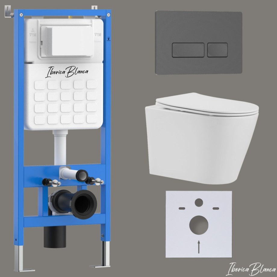 Комплект 3в1 IBERICA BLANCA инсталляция SILENCIO, унитаз BURGOS ALTO белый, кнопка смыва ESTI-R серый матовый (IB001.BRA.231.218)