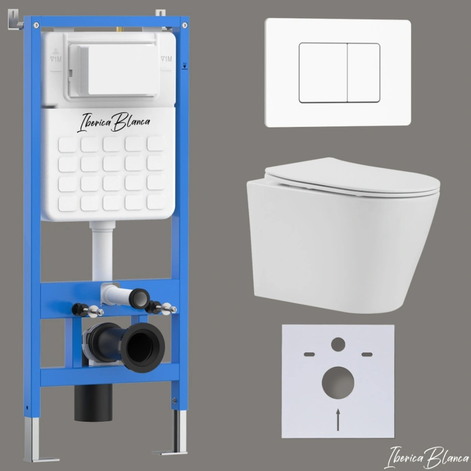 Комплект 3в1 IBERICA BLANCA инсталляция SILENCIO, унитаз BURGOS ALTO белый, кнопка смыва INOX-C белый матовый (IB001.BRA.231.111)