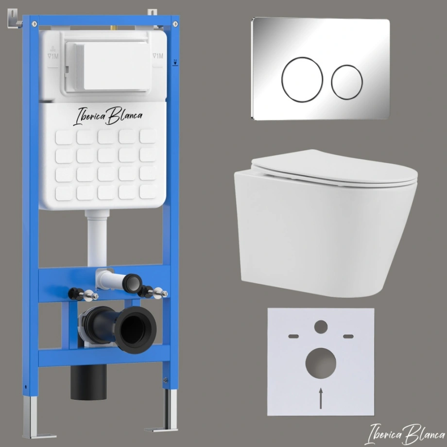 Комплект 3в1 IBERICA BLANCA инсталляция SILENCIO, унитаз BURGOS ALTO белый, кнопка смыва INOX-O хром глянцевый (IB001.BRA.234.8131)