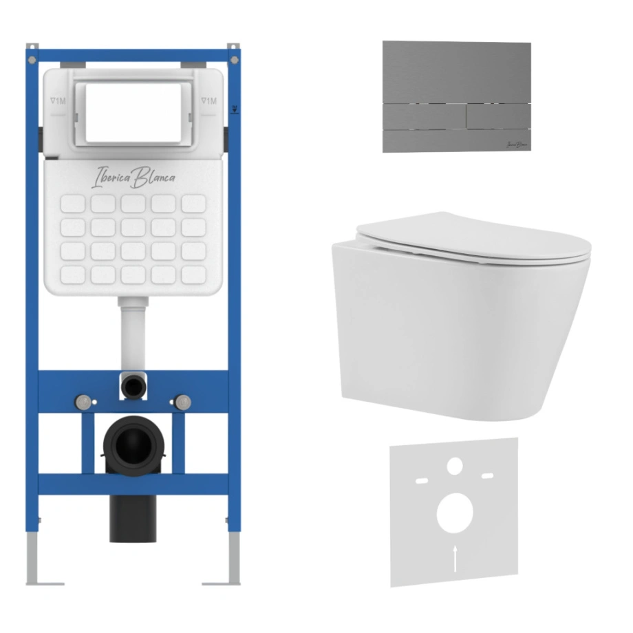 Комплект 3в1 IBERICA BLANCA инсталляция SILENCIO, унитаз BURGOS ALTO белый, кнопка смыва INOX-S вороненая сталь (IB001.BRA.234.1602)