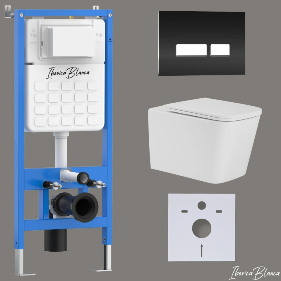 Комплект 3в1 IBERICA BLANCA инсталляция SILENCIO, унитаз TOLEDO ALTO белый, кнопка смыва CRYSTAL-R черный глянцевый (IB001.TLA.231.2211)