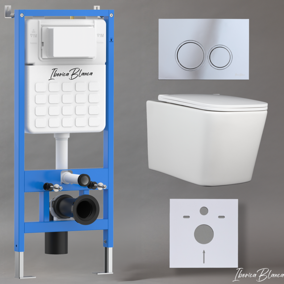 Комплект 3в1 IBERICA BLANCA инсталляция SILENCIO, унитаз TOLEDO ALTO белый, кнопка смыва ESTI-O хром глянцевый (IB001.TLA.231.823)