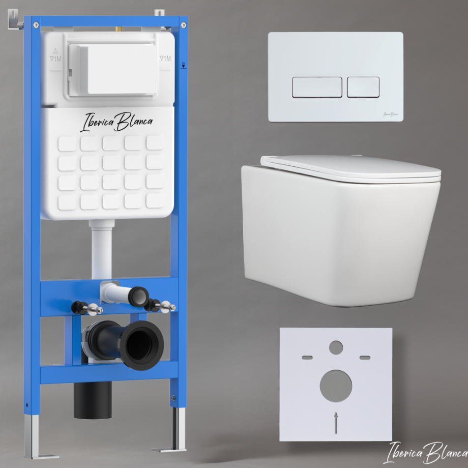 Комплект 3в1 IBERICA BLANCA инсталляция SILENCIO, унитаз TOLEDO ALTO белый, кнопка смыва ESTI-R белый глянцевый (IB001.TLA.231.211)