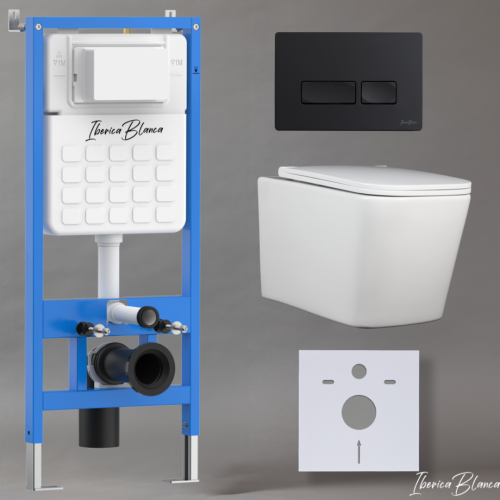 Комплект 3в1 IBERICA BLANCA инсталляция SILENCIO, унитаз TOLEDO ALTO белый, кнопка смыва ESTI-R черный матовый (IB001.TLA.231.212)