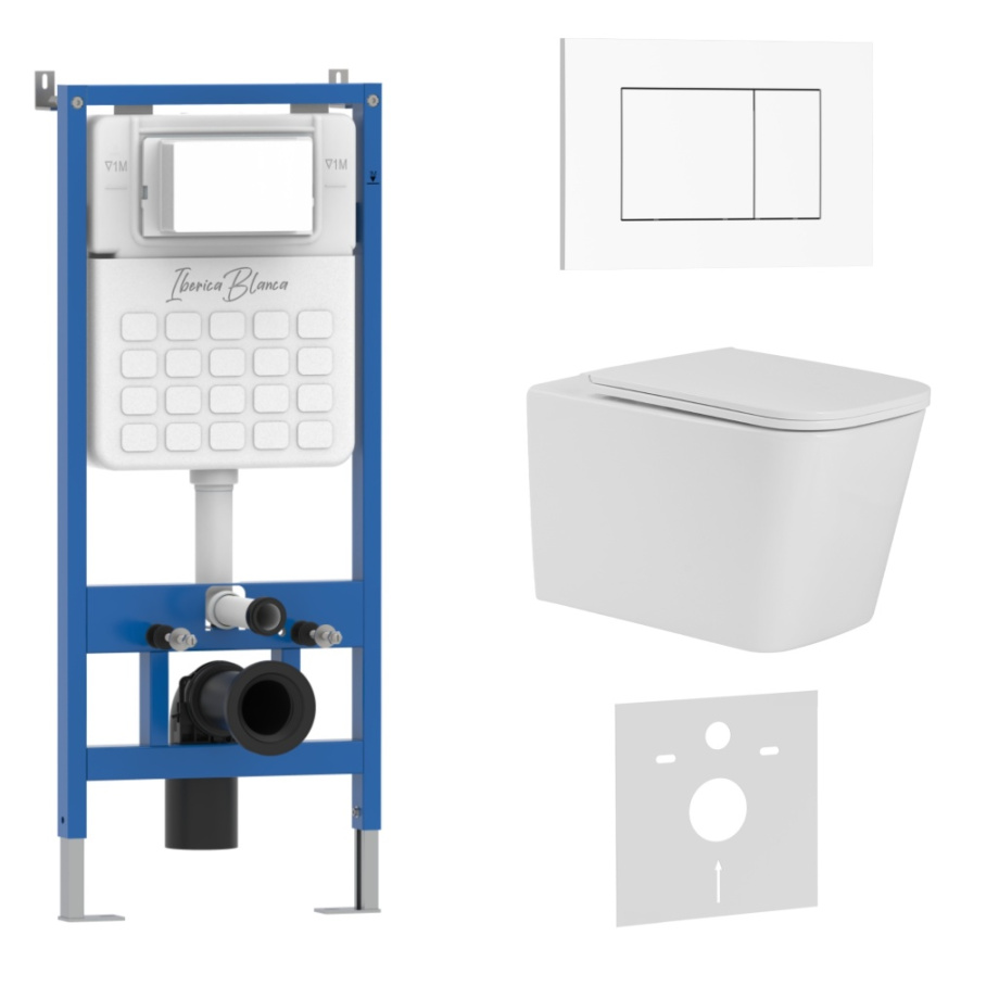 Комплект 3в1 IBERICA BLANCA инсталляция SILENCIO, унитаз TOLEDO ALTO белый, кнопка смыва ESTI-S белый глянцевый (IB001.TLA.234.855)