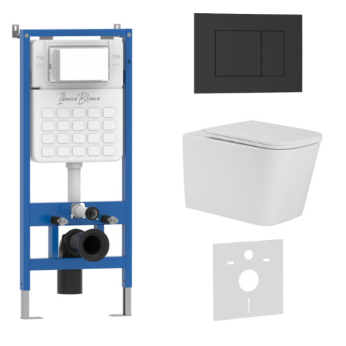 Комплект 3в1 IBERICA BLANCA инсталляция SILENCIO, унитаз TOLEDO ALTO белый, кнопка смыва ESTI-S черный матовый (IB001.TLA.234.851)