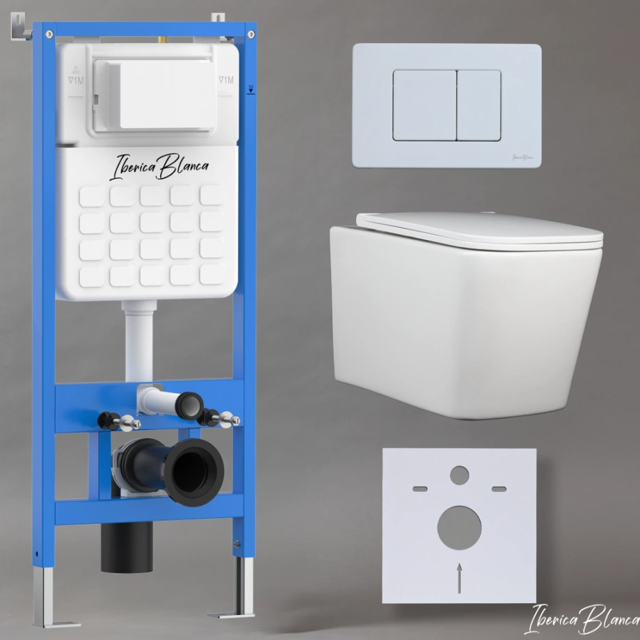 Комплект 3в1 IBERICA BLANCA инсталляция SILENCIO, унитаз TOLEDO ALTO белый, кнопка смыва INOX-C белый матовый (IB001.TLA.234.111)