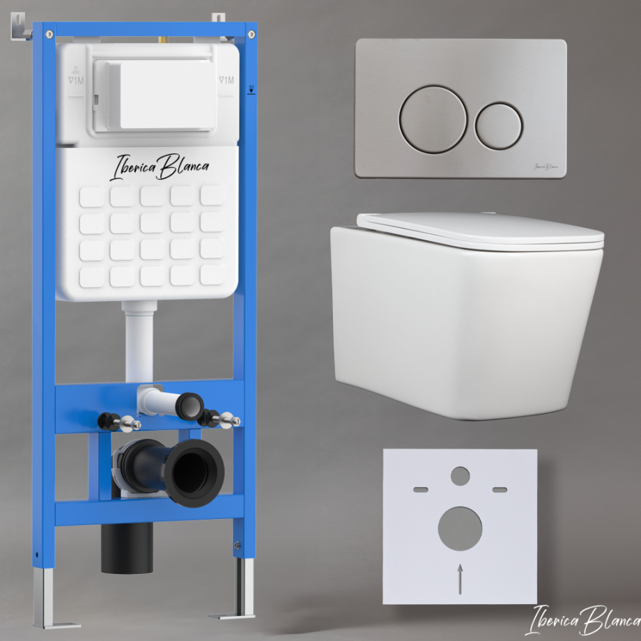 Комплект 3в1 IBERICA BLANCA инсталляция SILENCIO, унитаз TOLEDO ALTO белый, кнопка смыва INOX-O хром матовый (IB001.TLA.234.8132)