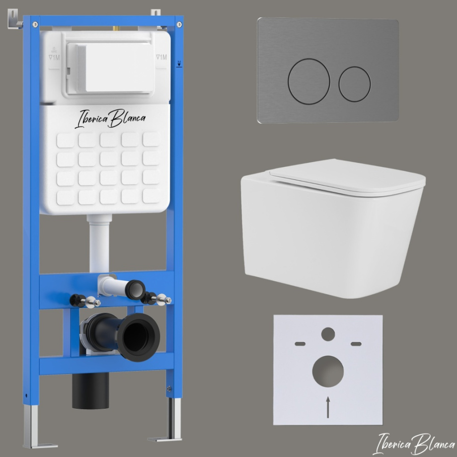 Комплект 3в1 IBERICA BLANCA инсталляция SILENCIO, унитаз TOLEDO ALTO белый, кнопка смыва INOX-О вороненая сталь (IB001.TLA.234.8180)