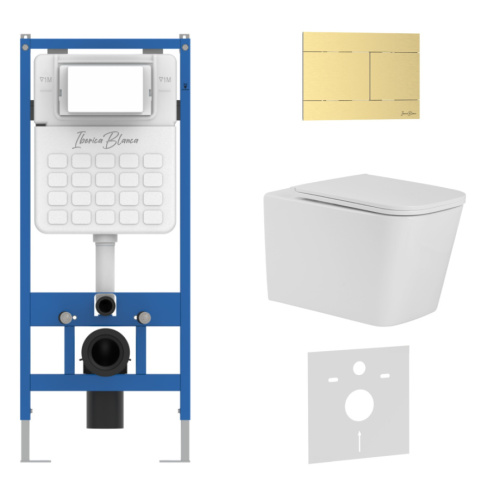 Комплект 3в1 IBERICA BLANCA инсталляция SILENCIO, унитаз TOLEDO ALTO белый, кнопка смыва INOX-R золото матовое (IB001.TLA.231.1503)