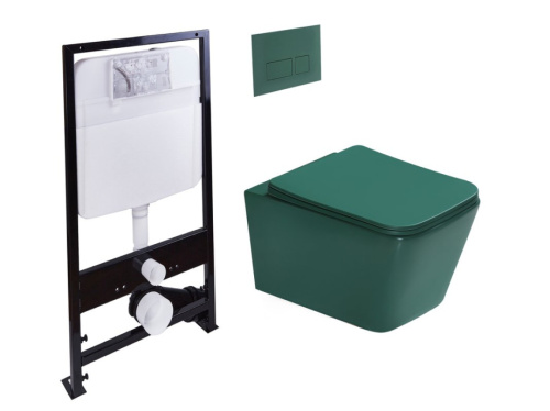 Унитаз подвесной SantiLine SL-5007T-G+SL-01/G с инсталляцией и кнопкой, зеленый матовый