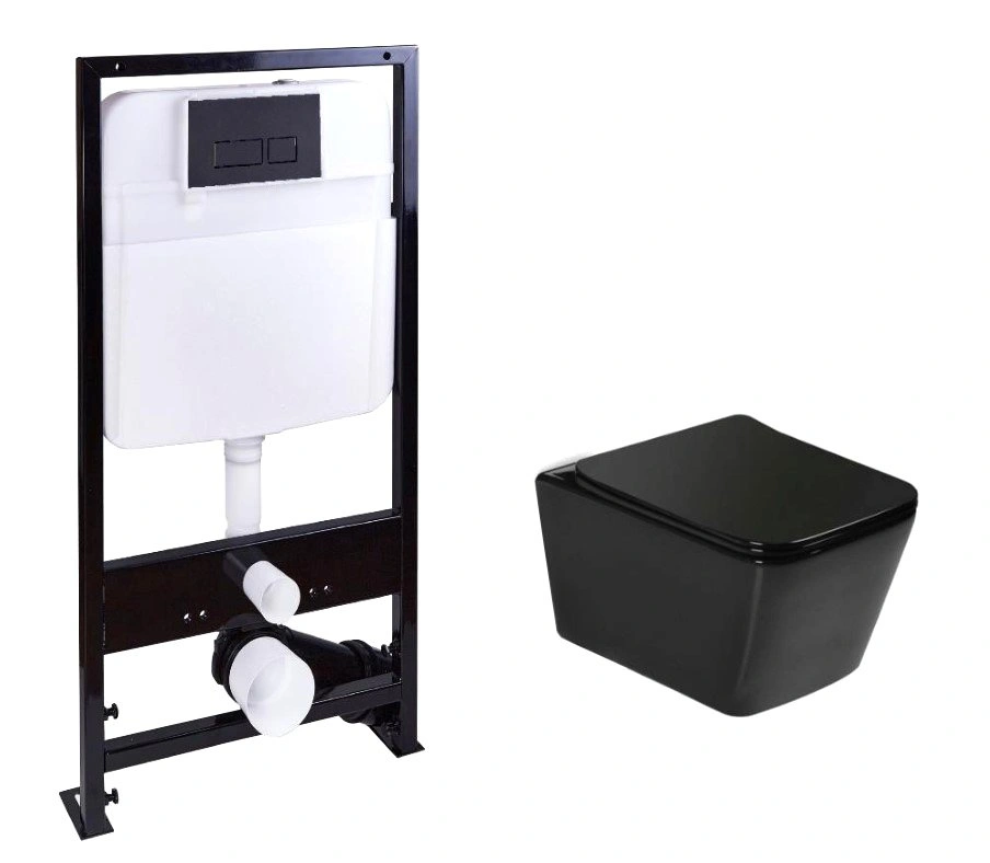 Унитаз подвесной SantiLine SL-5007T-MB+SL-04 с инсталляцией и кнопкой, черный матовый
