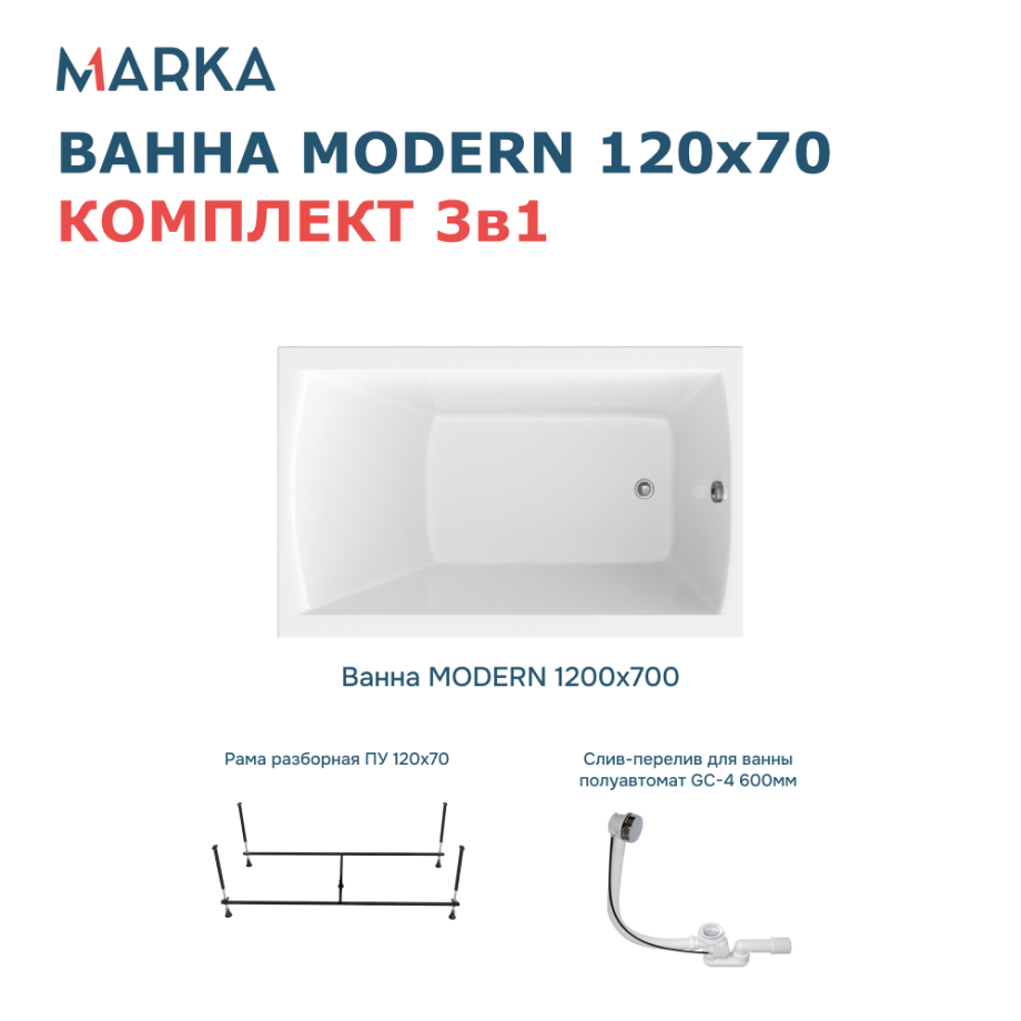 Ванна 1Marka MODERN 120х70 Комплект Стандарт 2+