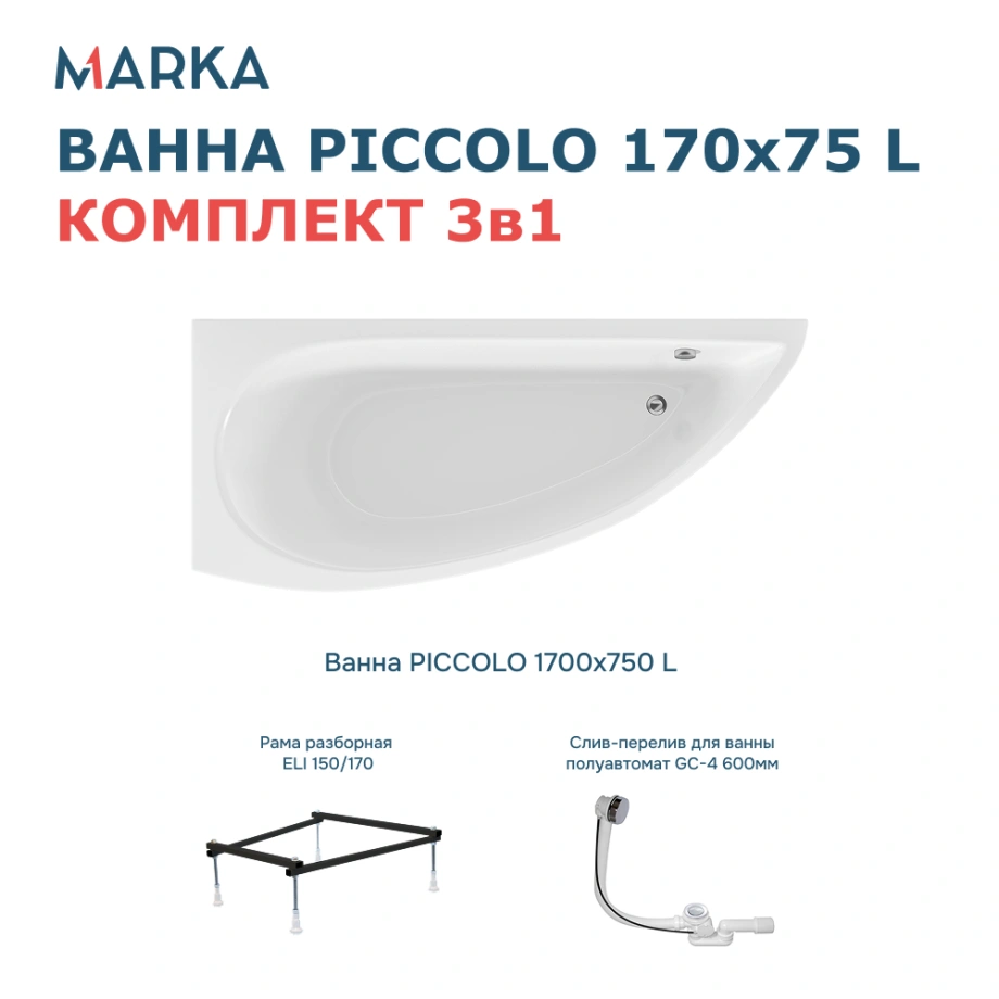 Ванна 1Marka PICCOLO 170*75 L Комплект Стандарт 2+